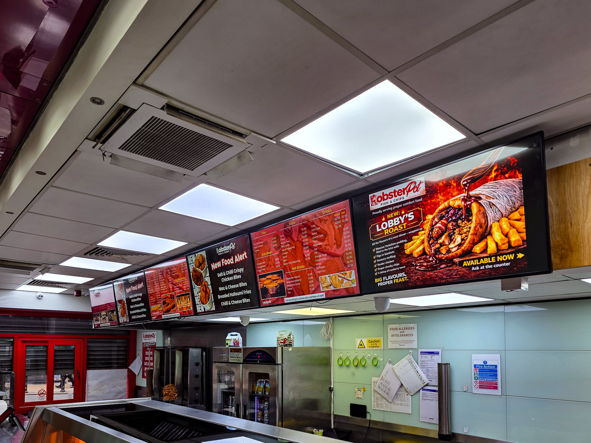 In a late-night QSR environment, menus do more than display prices, they shape decisions. The Lobster Pot wanted its digital menu screens to actively highlight special promotions and higher-margin products, particularly during busy trading windows.